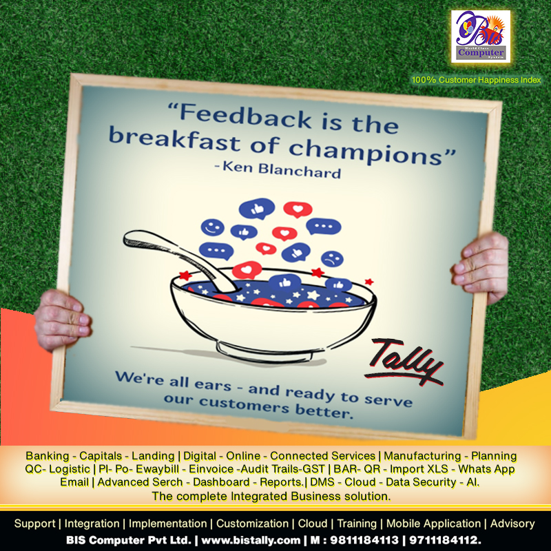 #BisTally | @ TALLY PARTNER ! We prioritize our customers, and their feedback helps us create lifelong champions. We feel incredibly successful after achieving a 100% customer happiness index based on this feedback. | Upgrade to the next level of Tally Prime with our connected services for your ERP! We specialize in providing expert guidance, training, advisory services, management solutions, and customized development for your business. With a wide range of solutions and plugins, we can meet all your Tally Prime needs. | Our expertise lies in integrating and implementing ERP processes. As your top-rated Tally partner, we offer exceptional Tally support services and solutions for all your accounting requirements, including GST and Tally solutions. Whether you need to purchase Tally or require an ERP solution, our dedicated team of technology experts and developers is here to assist you. Choose us as your technology partner and elevate your business to new heights! #Best_Tally_Partner #Tally_partner_in_Delhi #tally_prime #accounting #ERP #tally_five_star_partner #accountantsyoucantrust #accountingsoftware #BusinessErp #gstupdates #EInvoicing #Auditor #AuditTrail #traderscommunity #traders #businessloan #msme #accounting_software #EditLog #MCA #AuditTrail #TallyPrime #BusinessManagement #Business #Software #annualreturn #annualreport #annualreview #audit #GST #GSTAudit #GSTR9 #gstr9c #gstr1 #gstreturns #GSTR3B #reconciliation #GSTR2A #GSTR2B #businessgrowth #businesssolution #erpsoftware #businesssoftware #inventorysoftware #accountingsoftware #POSsoftware #GSTsoftware #smallbusinesses #businessmanagement www.bistally.com