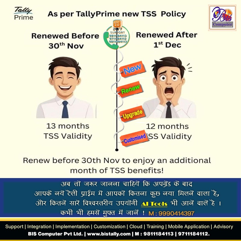 #BISTally | Whenever you contemplate expanding your business, you may feel unsure about what steps to take. Starting with small actions can be challenging, especially without proper guidance. Unfortunately, this can lead to seeing your competitors thriving while you feel left behind, which can be disheartening.| However, we encourage you to discuss your business needs with us, your reliable expert manager, for a free consultation. Together, we can implement effective processes in your Tally software or other systems, paving the way for significant progress in your business. Our goal is to help you grow, because when you succeed, we succeed too. | Upgrade your Tally today and take advantage of our experience and digital services. We are proud to be recognised as a five-star partner by Tally Solutions and are committed to supporting you as your trusted business manager. Call your best tally partner for any type of support, like Tally Purchase, service integration, and customisation with the training. #Tally_Partner more info: https://www.bistally.com/latest-update/our-customers-are-saying-about-tally-prime-us-as-a-tally-partner/106